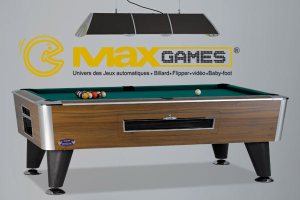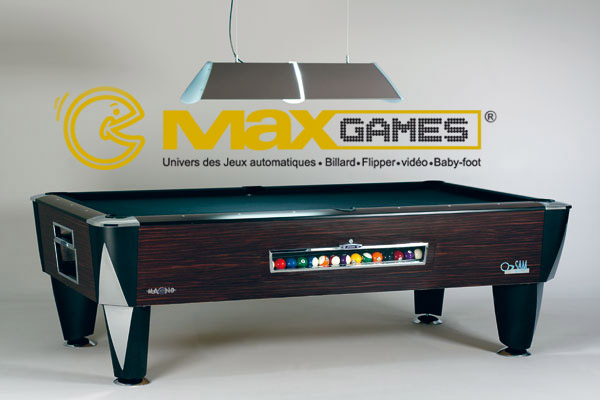 MAX GAMES fabrique et commercialise des billards dans des styles et matériaux variés ainsi que des accessoires et pièces détachées : balles, billes, cannes de billards, triangles, monnayeurs…porte-queue, luminaires et lustres conçus spécialement pour professionnels et particuliers.